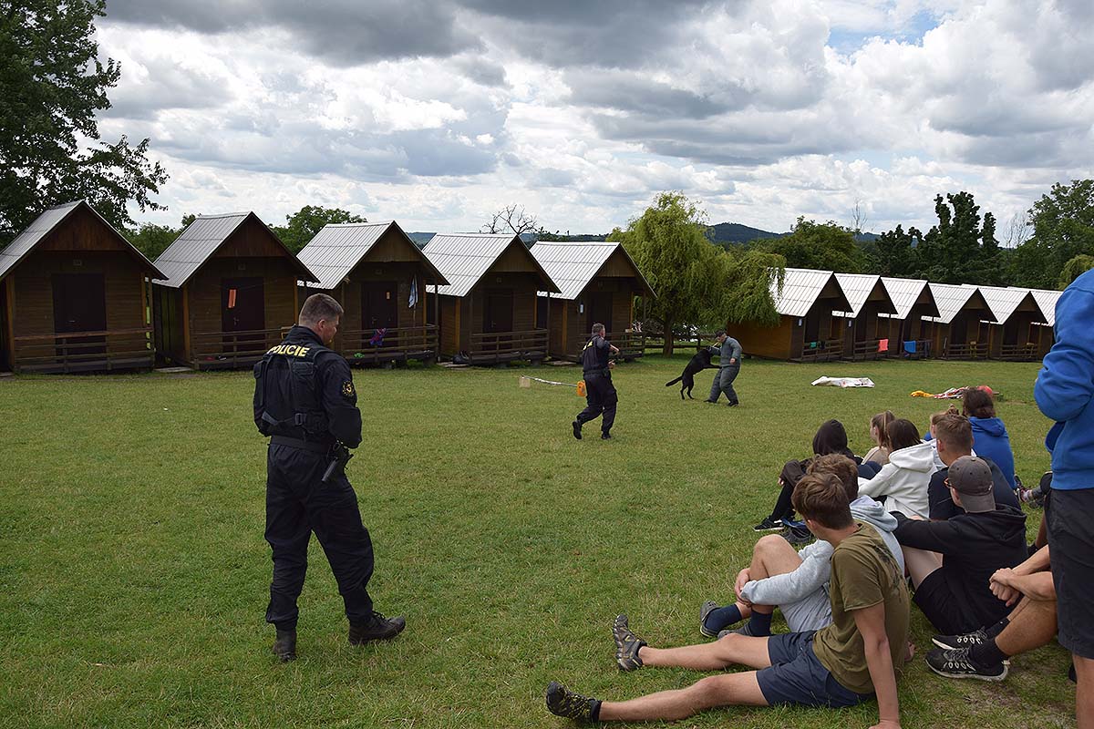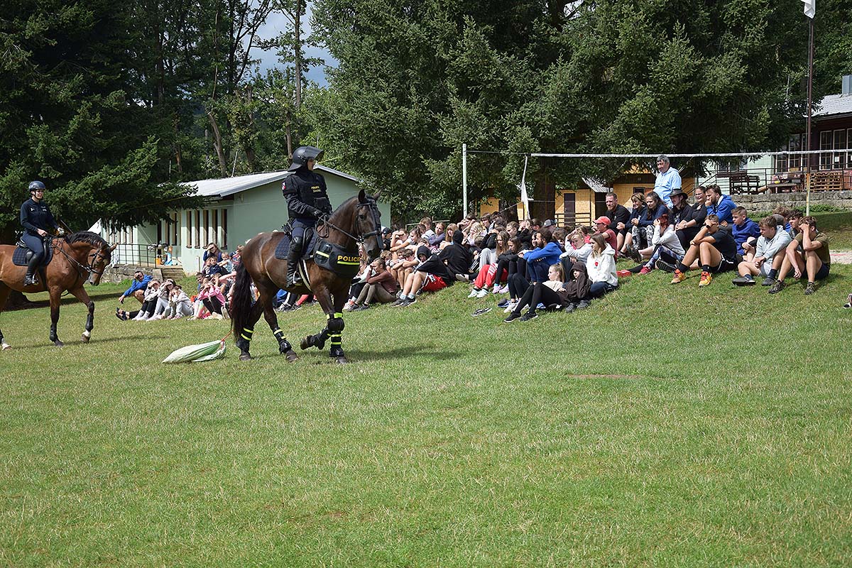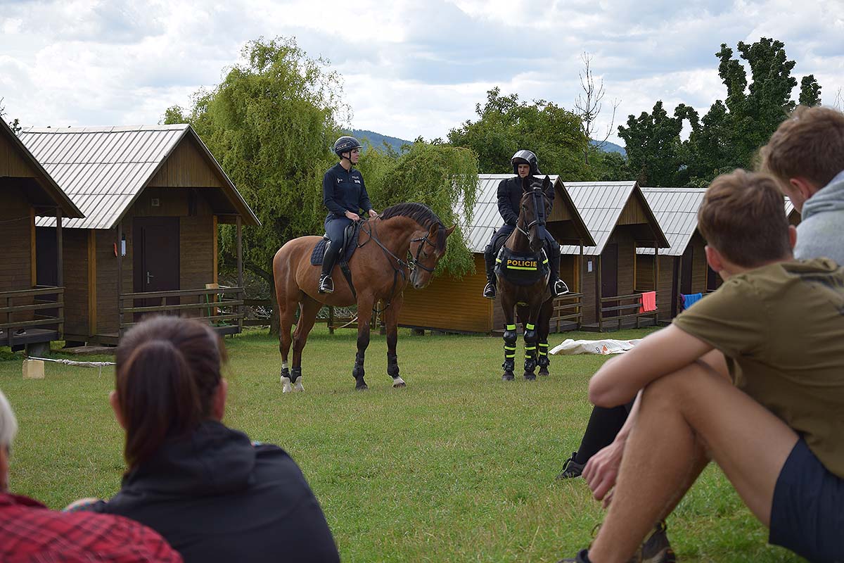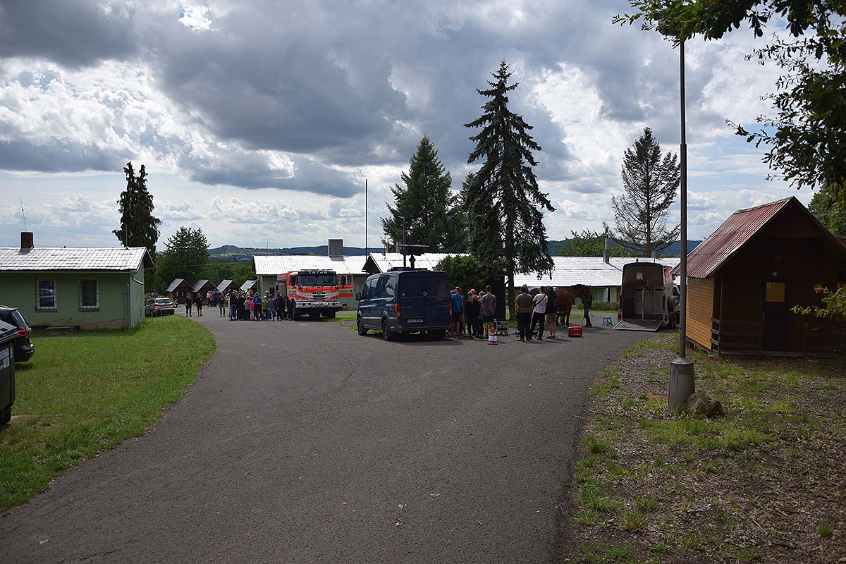 Během preventivních aktivit konaných v letních měsících navštívili policisté, záchranáři a hasiči dne 8. srpna 2023 tradiční letní dětský tábor v rekreačním zařízení Odborového svazu pracovníků zemědělství a výživy - Asociace svobodných odborů České republiky (OSPZV-ASO ČR) v Železnici.